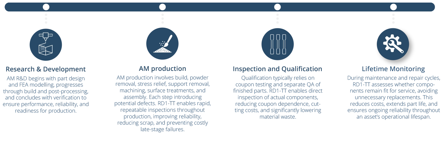 Integrate nonlinear resonance testing at any stage of your manufacturing process. From the initial build, post-processing, or final sign-off, RD1-TT enhances your current inspection workflow; reducing delays while improving defect detection and part confidence.